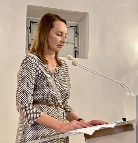 Die Germanistin Oksana Pavlychko, die an der Taras Shevchenko Nationaluniversität Kiew tätig war und vor zwei Jahren nach Graz floh, las ausdrucksstarke Gedichte und Liedtexte bedeutender ukrainischer Gegenwartsautor:innen wie Victoria Amelina, Serhij Zhadan und Iryna Shuvalova vor, für die das Schreiben, angesichts des weiter andauernden Angriffskrieges auf die Ukraine, notwendiger Ausdruck der erlebten Verwundung und des starken Bedürfnisses nach Frieden ist.