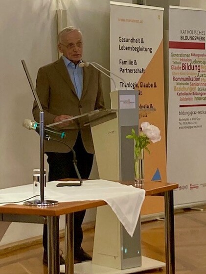 Durch den tiefsinnigen Vortrags- und Gesprächsabend führte die langjährige ehemalige Referentin des Bildungshauses Mariatrost, Ingrid Zechner, die Initiatorin dieser Veranstaltung. Kathrin Karloff, die Leiterin der Nachfolgeinstitution Bildungsforum Mariatrost, würdigte Ingrid Zechner für ihr mehr als 35-jähriges Wirken in der Erwachsenenbildung. Die Eröffnungsworte sprach Walter Prügger, Leiter des diözesanen Ressorts Bildung, Kunst & Kultur und des Bischöflichen Amtes für Schule und Bildung.