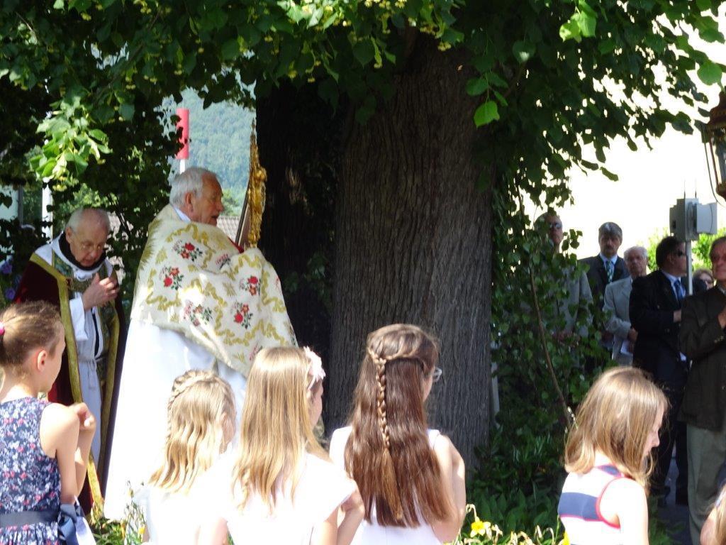Die Prozession, an der einige Erstkommunionkinder und etliche örtliche Vereine, wie Musikverein, Landjugend, Kameradschaftsbund, Oberlandler, Hocholma teilgenommen haben, endete dann mit einen Segen und dem "Großer Gott wir loben Dich" in der Pfarrkirche.