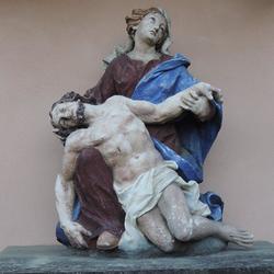 Die Pietastatue ist jährlich  am ersten Bitttag Ausgangspunkt für die Bittprozession, die über den Franziskusbrunnen  und die Mariensäule zur Pfarrkirche führt.